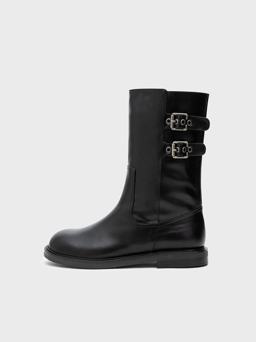 VINTAGE TWO BUCKLES MID BOOT_BLACK