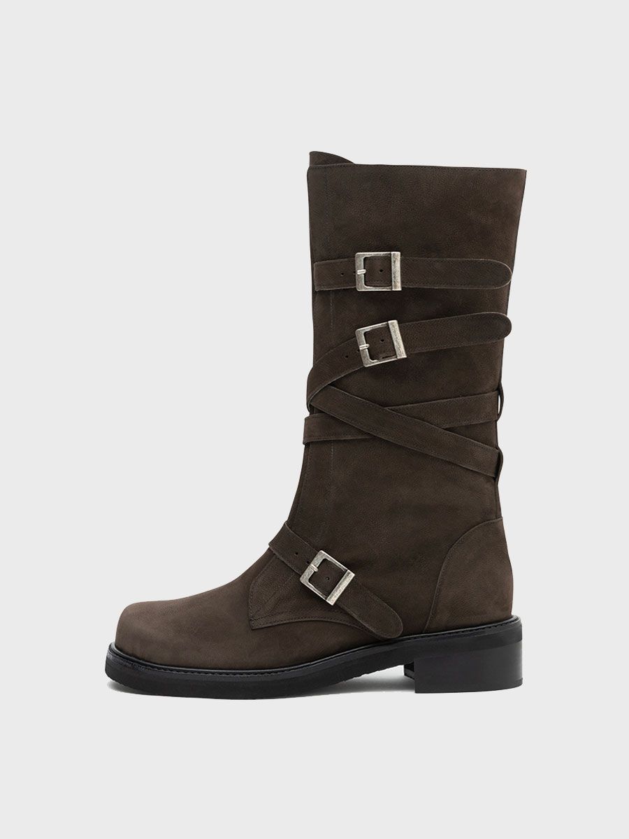 [EXCLUSIVE] LETA BUCKLE STRAP BOOT_DARK BROWN(NUBUCK)