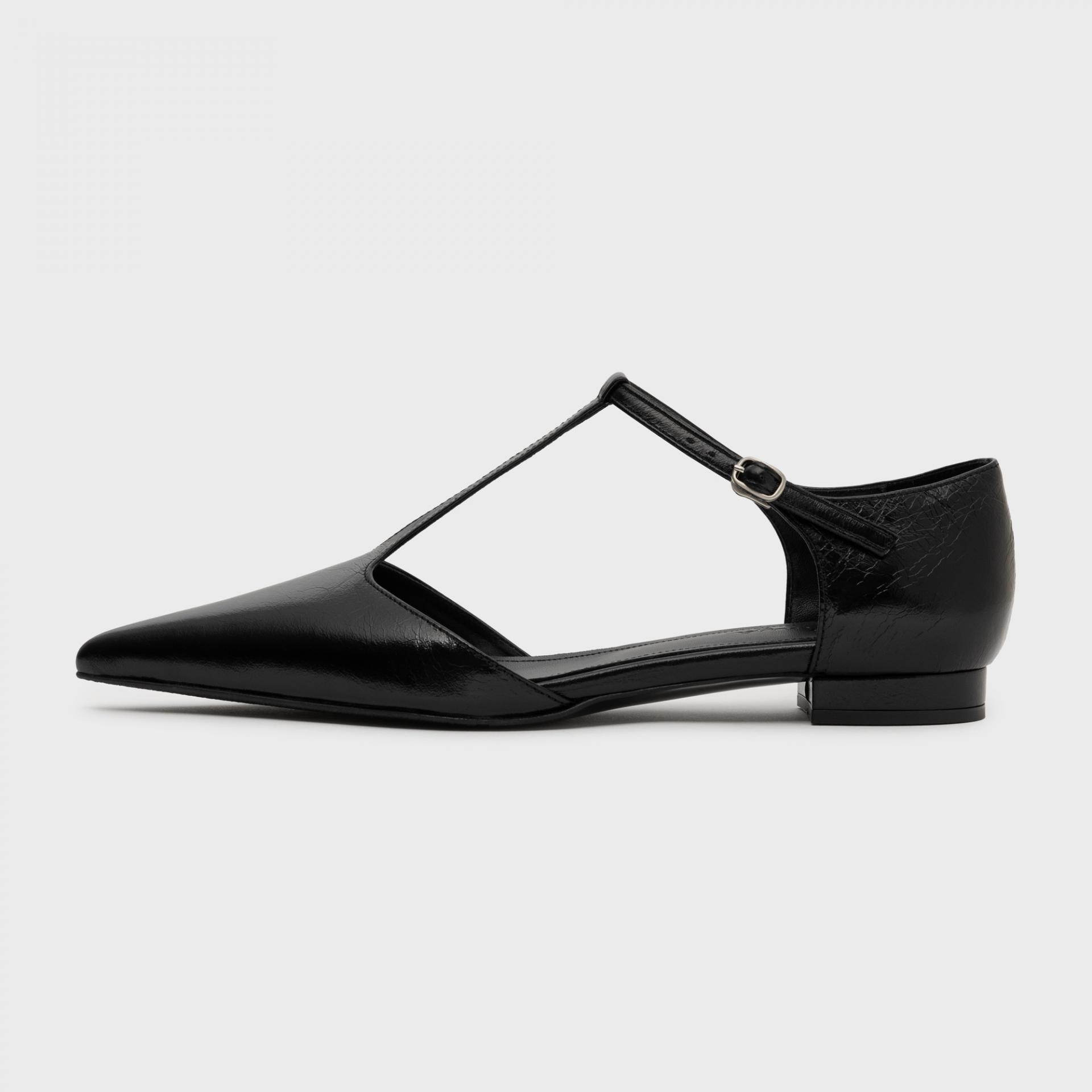 드럼 다잉 방식으로 가공된 부드러운 이탈리아산 카우 레더가 클래식하면서도 우아한 무드를 연출하는 T-스트랩 플랫 슈즈입니다. 발등을 안정감 있게 감싸는 스트랩 디자인과 슬림한 포인트 토 실루엣이 다리 라인을 더욱 길고 정돈되게 보이도록 돕습니다. 낮은 굽으로 편안한 착화감을 제공하며, 가볍고 유연한 소재로 장시간 착용에도 부담이 없습니다. 미니멀한 디자인 속 섬세한 디테일이 돋보이며, 데일리부터 격식 있는 자리까지 다양하게 스타일링할 수 있는 timeless한 아이템입니다.