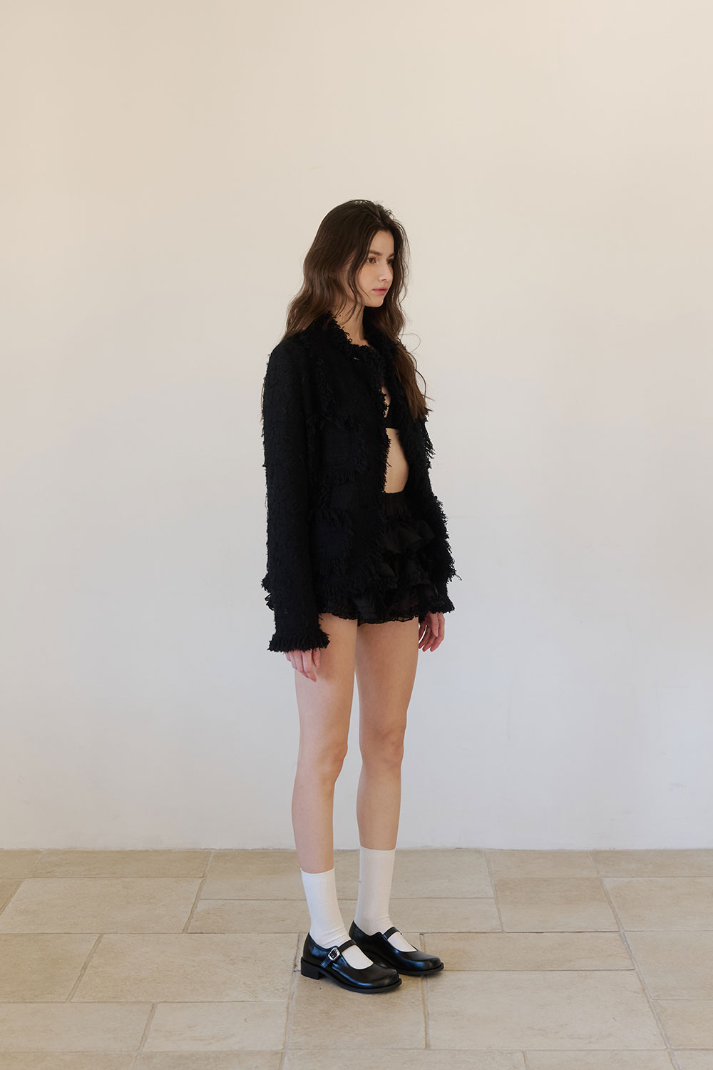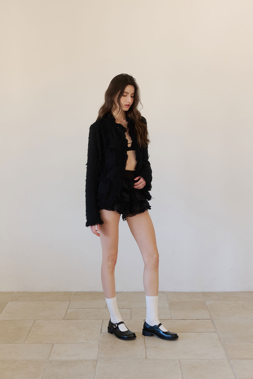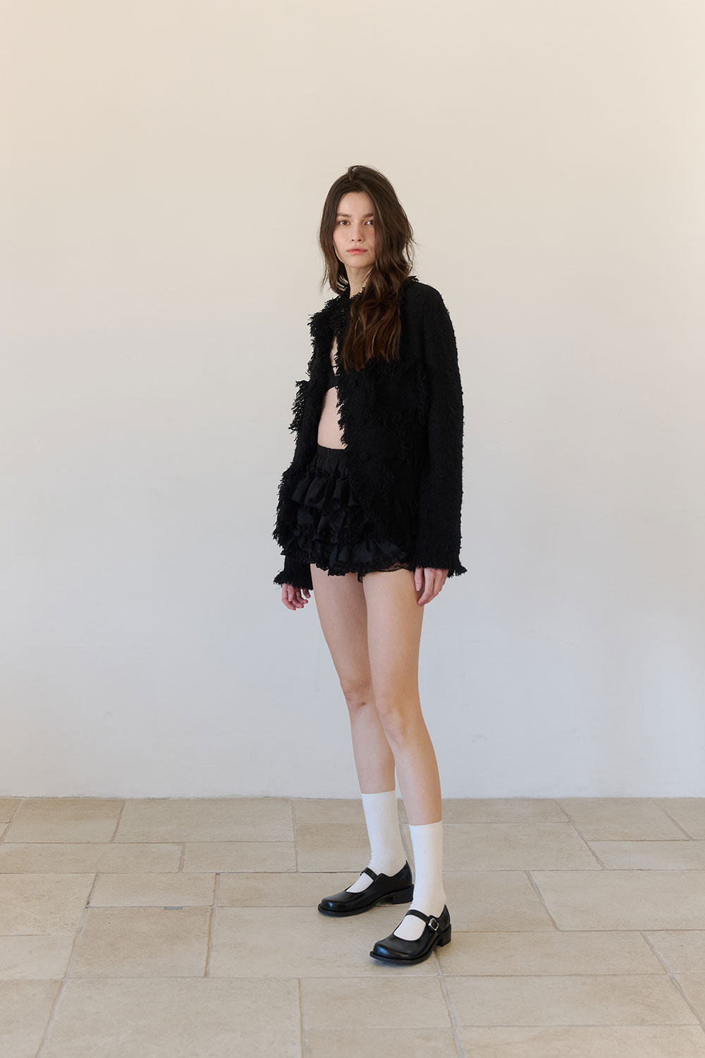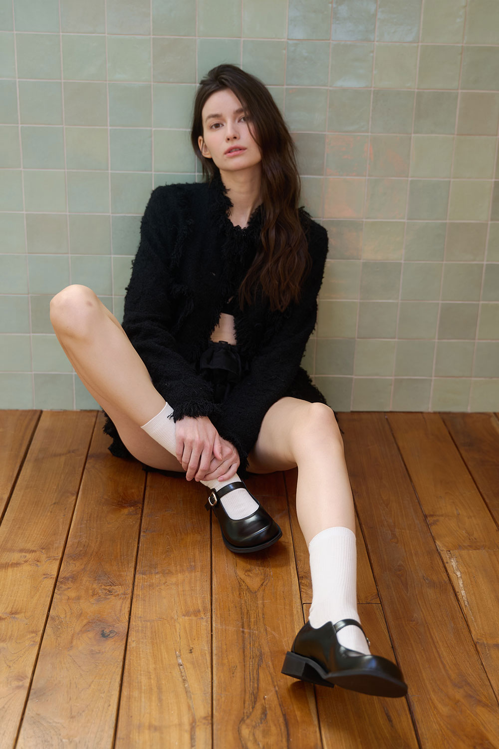 군더더기 없는 디자인과 고급스러운 블랙 컬러가 조화를 이루는 베이직 메리제인 스타일입니다. 드럼 다잉 공법으로 가공된 이탈리아 카우 레더를 사용해 자연스러운 모공감과 은은한 광택이 돋보이며, 시간이 지날수록 더욱 깊이 있는 멋을 더해줍니다. 안정적인 스트랩과 적당한 굽 높이로 편안한 착화감을 제공하며, 천연 가죽 웰트와 홍창을 사용해 견고함과 클래식한 분위기를 동시에 느낄 수 있습니다. 유행을 타지 않는 미니멀한 디자인으로, 시간이 흘러도 변치 않는 timeless한 스타일을 완성합니다.