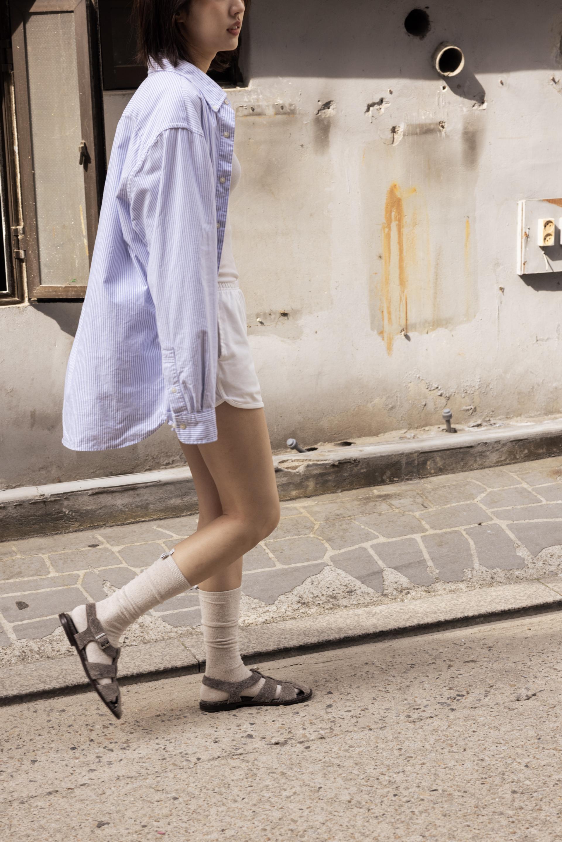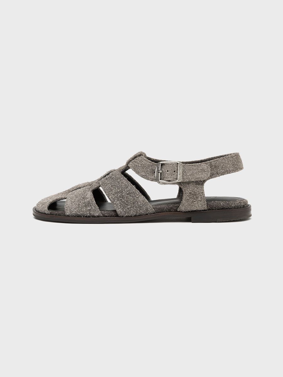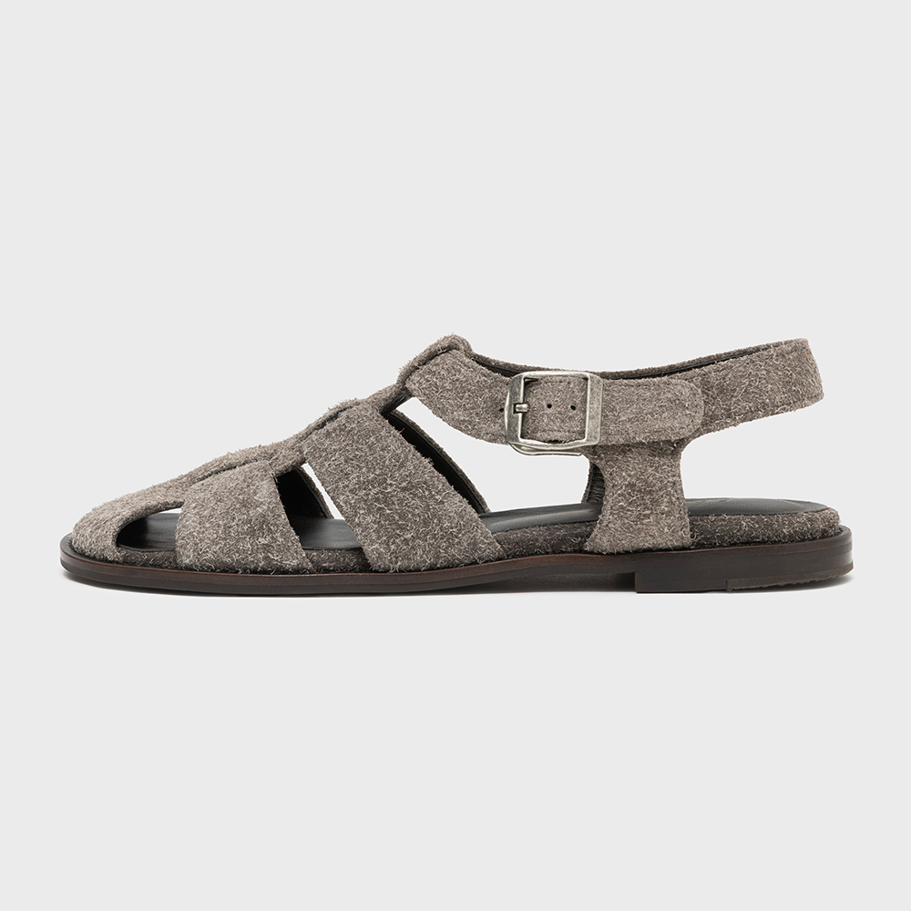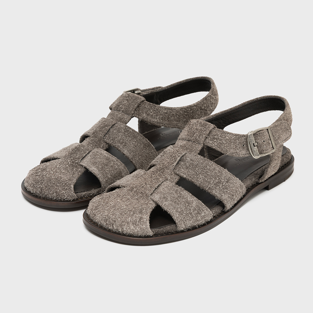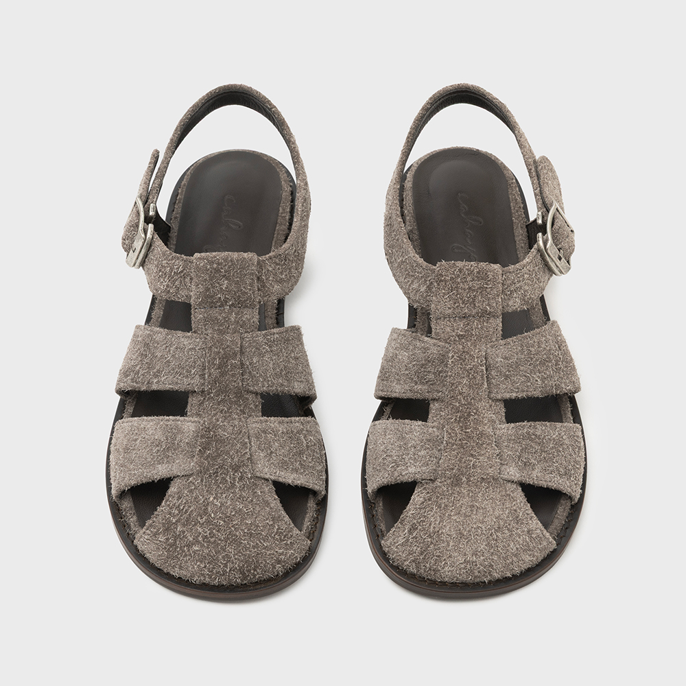 통기성 좋은 컷아웃 구조에 빈티지한 텍스처가 돋보이는 이탈리아산 카프헤어 가죽을 사용해, 독특한 질감과 감도를 살린 차하야의 썸머 피셔맨 샌들입니다. 발을 안정적으로 감싸는 구조적인 스트랩 디자인에 고급스러운 앤틱 가공 실버 버클을 더해 클래식한 무드를 완성했으며, 여유 있는 컷아웃 디테일로 통기성과 편안한 착화감을 동시에 제공합니다. 아웃솔은 빈티지 가죽 질감을 구현한 아도방 창 위에 수입산 논슬립 생고무를 커팅해 덧대어 미끄러짐을 최소화하고 안정감을 더했으며, 무게감은 가볍게 유지해 착화감까지 놓치지 않았습니다. 깊고 차분한 에스프레소 컬러는 여름에도 무게감 있는 스타일링을 완성해주는 감도 높은 시즌 아이템입니다.