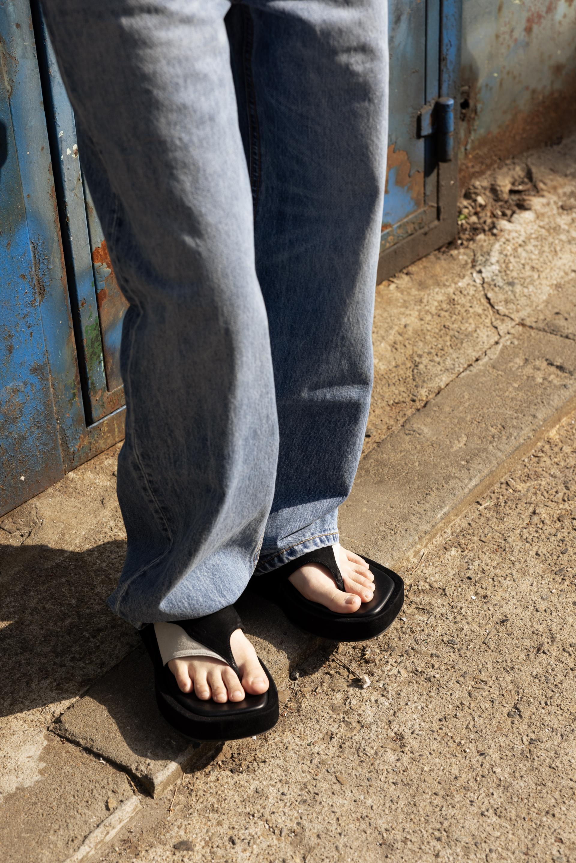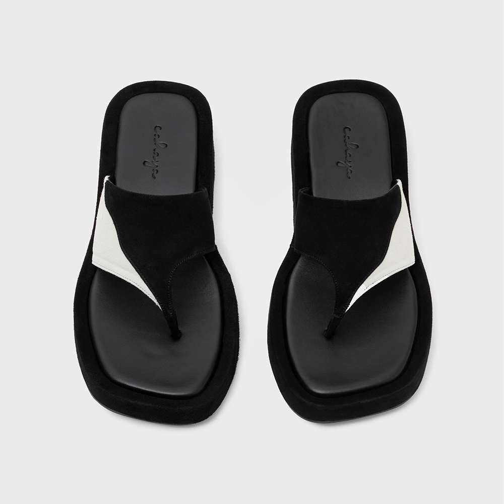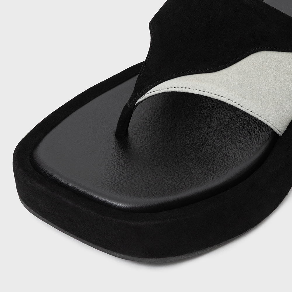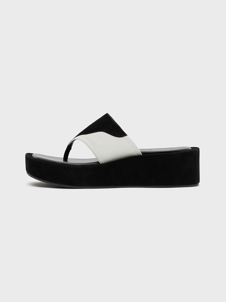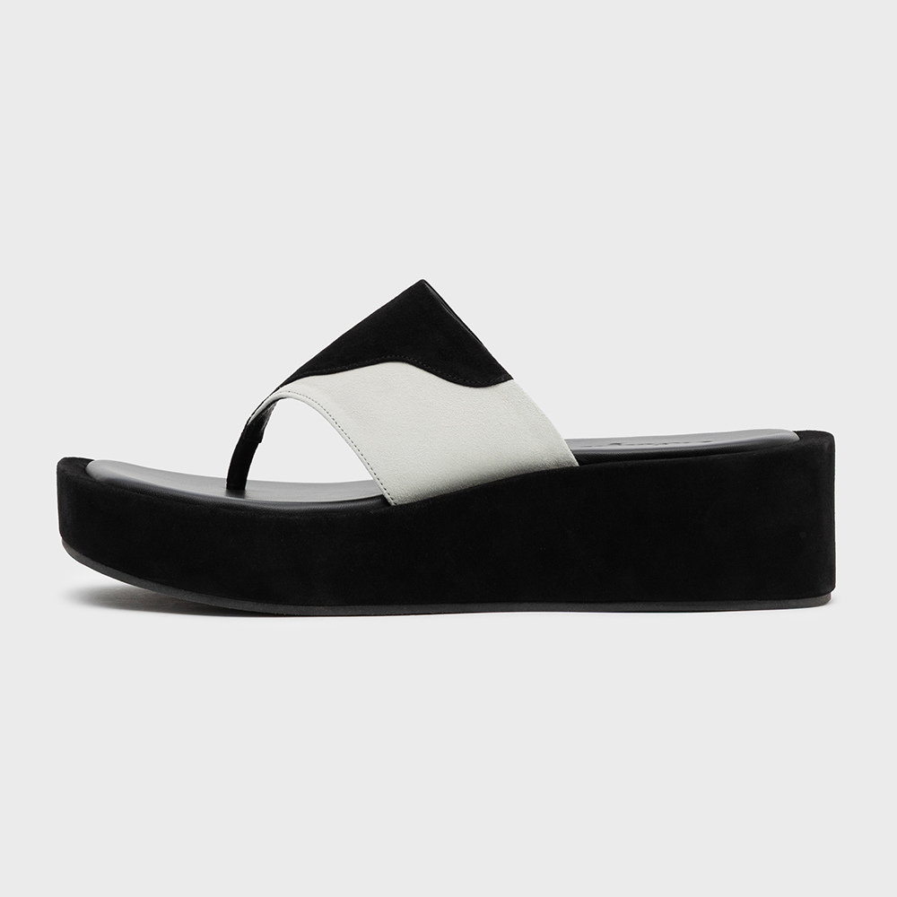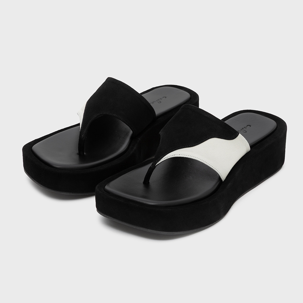 미니멀한 조형미와 편안한 착화감을 모두 담아낸 플랫폼 플립플랍입니다. 발등을 감싸는 와이드 스트랩은 방수 가공된 스웨이드와 매트한 컬러 배색이 조화를 이루어 단조롭지 않은 입체감을 연출합니다. 라인을 따라 흐르는 유려한 곡선 디테일은 차하야의 시그니처 요소로 발의 실루엣을 자연스럽게 강조해줍니다.