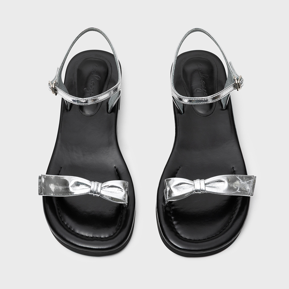 발바닥 전체에는 도톰한 라텍스 쿠션을 더해 장시간 착용에도 편안한 착화감을 유지해주며, 앞코에 더해진 리본 디테일이 경쾌하고 사랑스러운 무드를 더해, 여름 룩에 기분 좋은 포인트가 되어줍니다.
