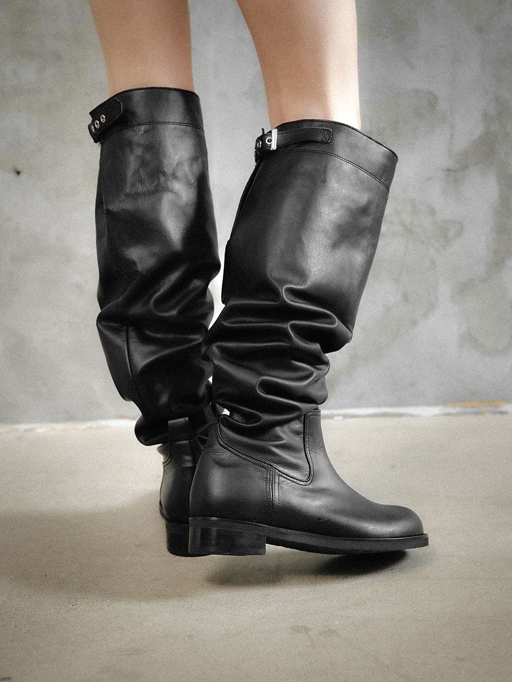 -유연한 가죽 특성으로 구겨 신을수록 자연스러운 슬라우치 실루엣