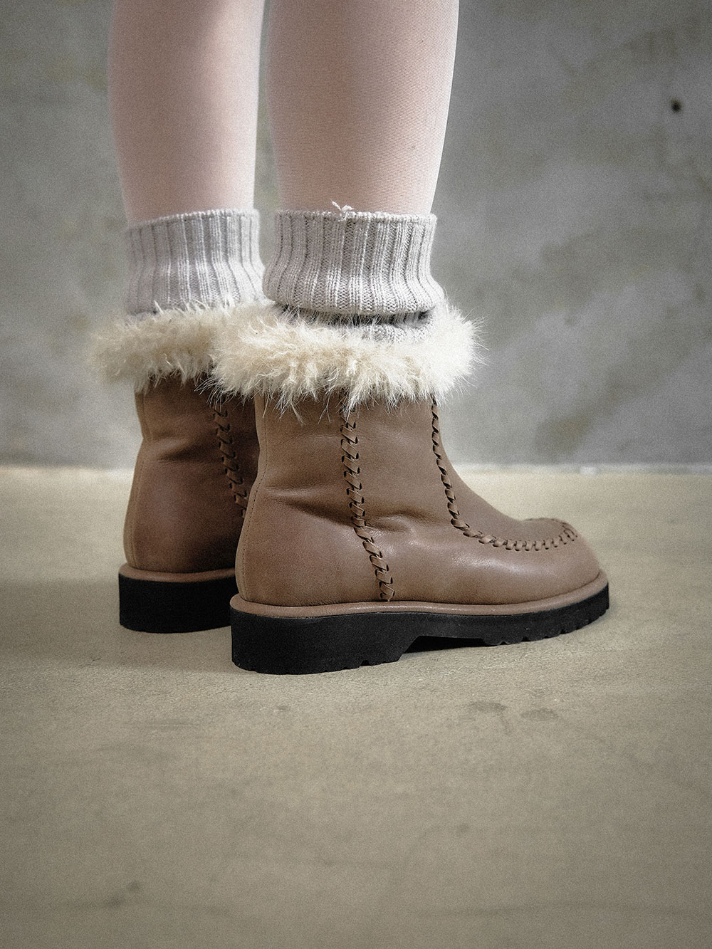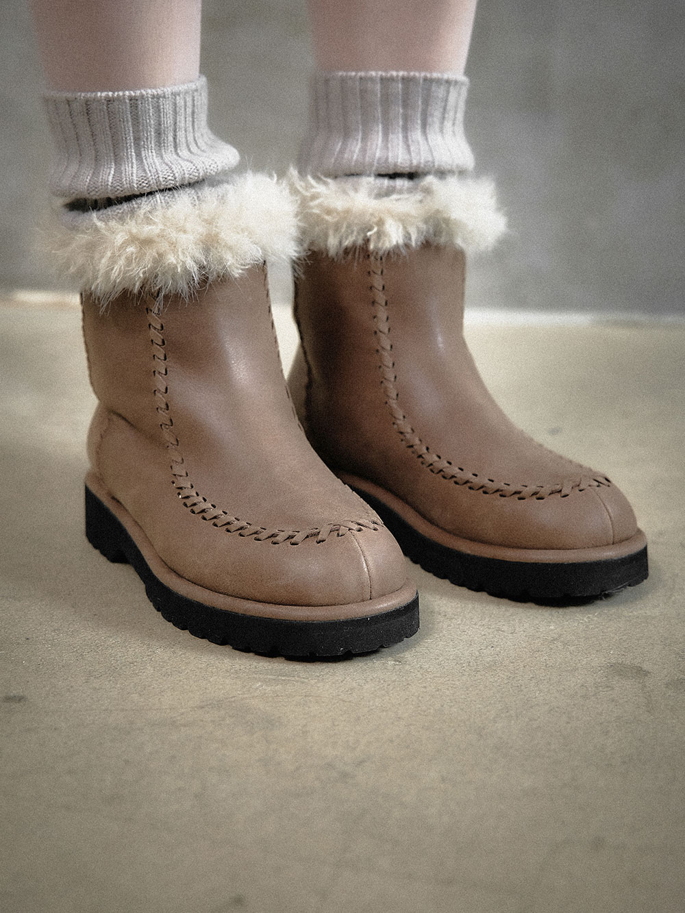 EMMA FLUFFY SHORT BOOT_TAUPE
